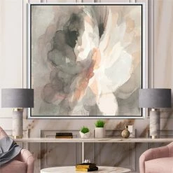 Wholesale ๐ Designart 32″ X 16″ “Abstract Peony Pink Gray” Fabric Canvas Wall Art In Gray โจ