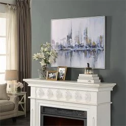 Liven up a bland wall or breathe new life into a tired space with this wrapped canvas painting print. It comes printed on wrapped canvas and Gold or Silver frame. It features a clean-lined horizontal silhouette that looks great above the console table in the entryway, or on the wall above the sofa in the living room. Boasting an abstract print of a reflecting City View in hues of blue, white, Gold and gray, this piece adds a pop of color to any wall. Plus, it comes with wall mounting hardware, saving you a trip to the store.