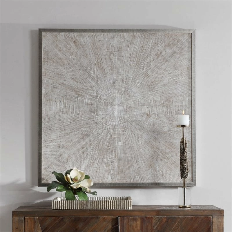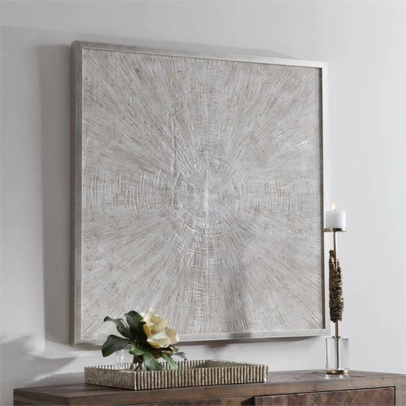 Hand painted on canvas, this artwork features heavy texture with natural beige and white tones and metallic silver highlights. A textured antique silver gallery frame accents the piece. Due to the handcrafted nature of this artwork, each piece may have subtle differences. With the advanced product engineering and packaging reinforcement, uttermost maintains some of the lowest damage rates in the industry. Each product is designed, manufactured and packaged with shipping in mind.