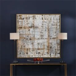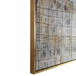 This hand painted abstract artwork on canvas was inspired by a macro view of vintage egyptian linen. The geometric composition features heavily textured details and is rendered in shades of white, ochre, and gray. A bright gold leaf gallery frame completes the piece. Due to the handcrafted nature of this artwork, each piece may have subtle differences. This piece may be hung horizontal or vertical. With the advanced product engineering and packaging reinforcement, uttermost maintains some of the lowest damage rates in the industry. Each product is designed, manufactured and packaged with shipping in mind.
