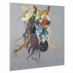Yosemite Home Decor Presents A Hand Painted Contemporary Piece Of Artwork That Is Bold And Mesmerizing. The Painting Has Striking Hues Of Red, Yellow, Green, Blue, Black, Orange, And Gold With Hints Of Metallic Areas Throughout. With The Horse Head Set Against A Neutral Grey Canvas The Gold Highlights Glisten, Bringing Out The Beauty Of This Unique Painting. The Bold Colors Jump Off Of The Canvas Highlighting The Piercing Gaze Of This Magnificent Animal Which Seems To Be Looking In The Viewer’S Direction. This Painting Is More Than A Work Of Art, It Is The Very Essence Of Creativity. This Painting Is Heavily Textured With Thicker Brushstrokes And Pieces Of Fabric Which Help Bring This Painting To Life.