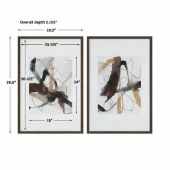 This Abstract Artwork Displays A Harmonious Blend Of Neutral Brushstrokes In Gray, Black, And Warm Chestnut Tones. Each Print Is Accented By A White Mat Under Glass With A Dark Walnut Finished Frame. Artwork By Jennifer Goldberger.