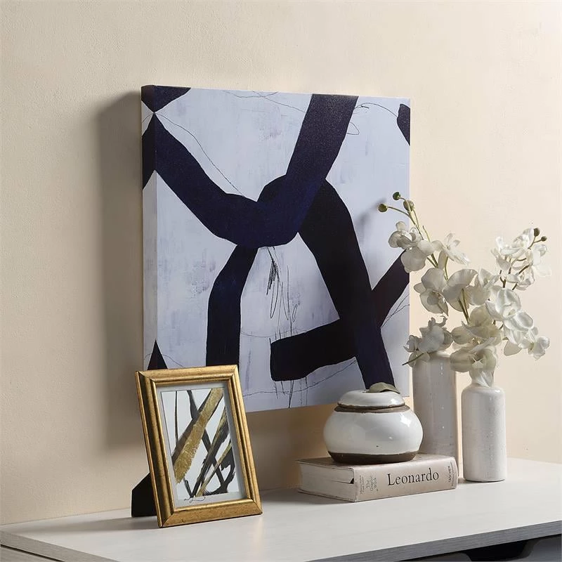 Our blue and white abstract art adds distinct elegance and chic style. Try adding this striking art to your home to instantly elevate your space. Showcasing an abstract circling motif, these lovely designs are the perfect finishing touches for contemporary spaces. Try hanging these pieces together above your living room mantle for a beautiful focal point.