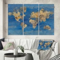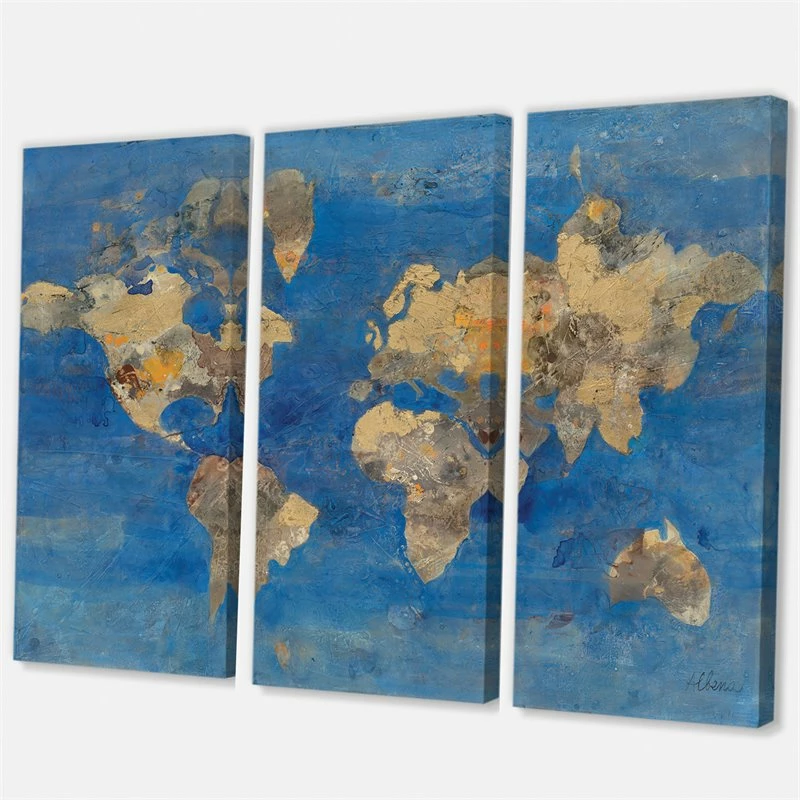 Be the first to review “Promo ๐ Designart 60″ X 40″ “Golden World Map” Fabric Canvas Wall Art In Blue ๐” Cancel reply